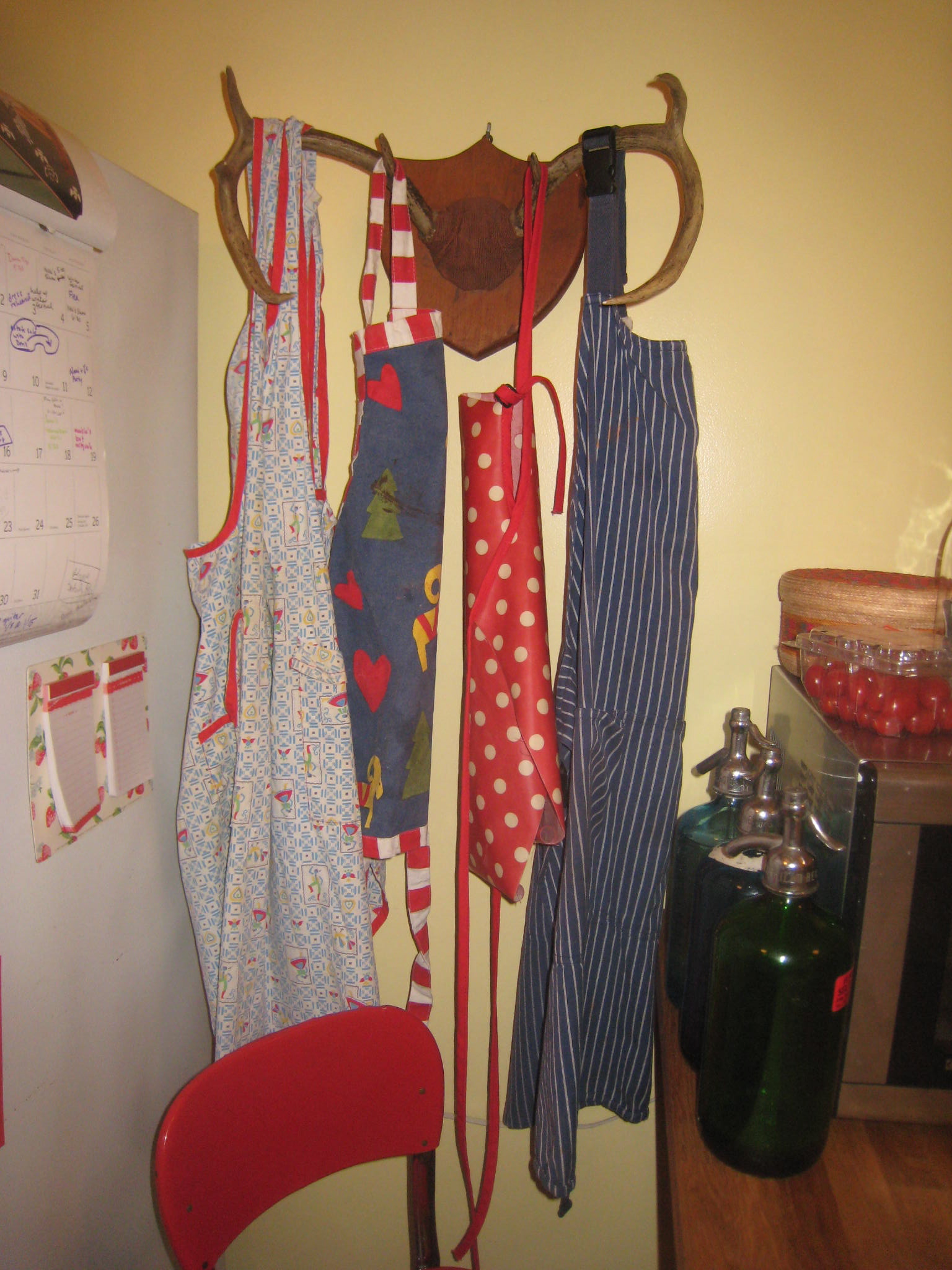 UncategorizedAntler Apron Rack December 15, 2009April 3, 2018 windsorplaceantiques I've been doing some kitchen renovations. Here is a fun and practical way to keep your vintage aprons and tea towels close at hand. I will be selling lots of vintage aprons, linens and perhaps a few antlers at the indoor flea in January. Share this: Click to share on X (Opens in new window) X Click to share on Facebook (Opens in new window) Facebook Like Loading... Related Published by windsorplaceantiques View all posts by windsorplaceantiques