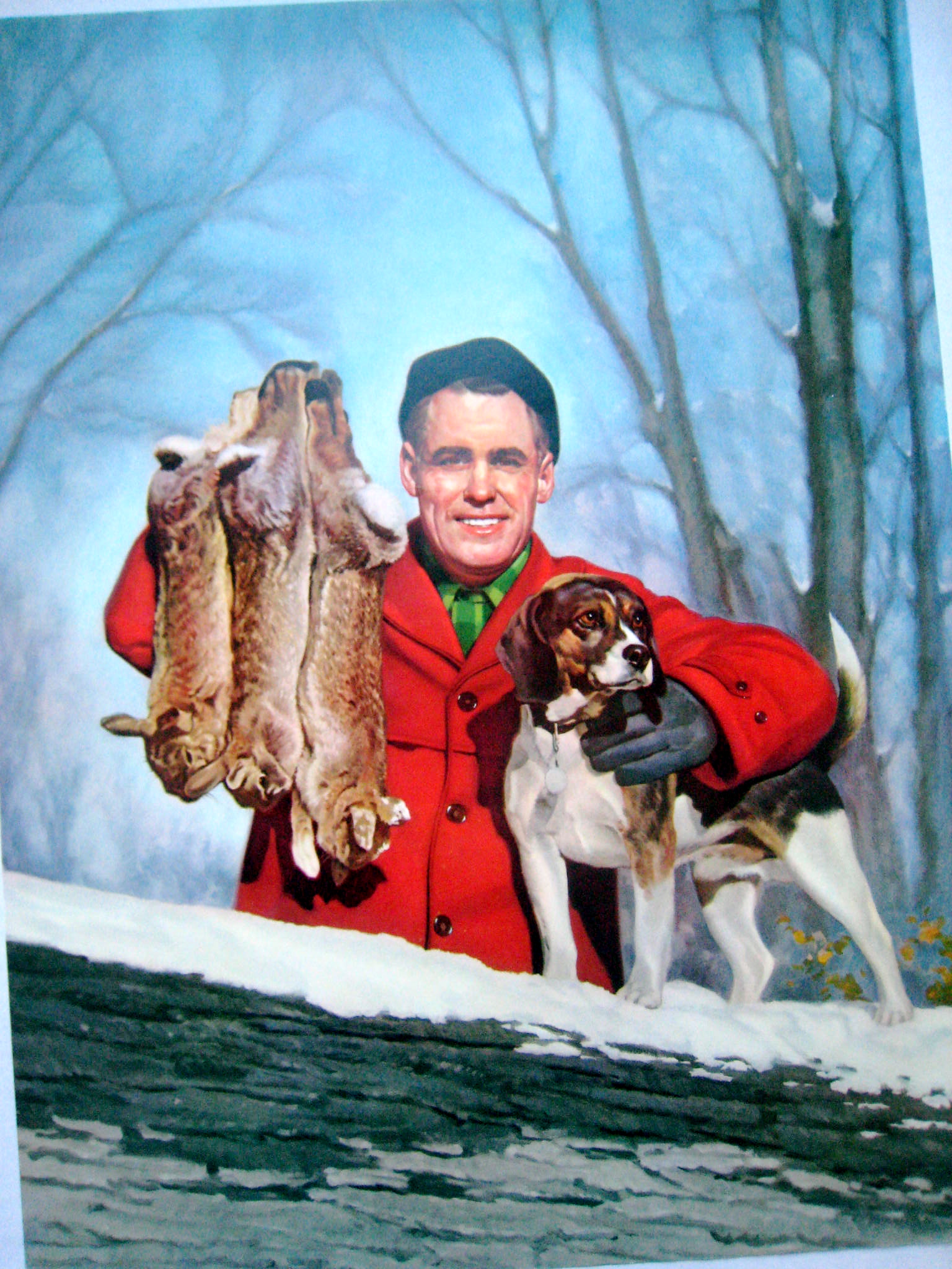 This dapper 1960s hunting man is so "Mad Men" on the weekends (dressed by Sears & Roebuck.) This vintage lithograph is 14"x18" and was produced in Philadelphia by the Weiller Company. Perfect for your city or country lodge. I will have it up for sale on my etsy page soon.