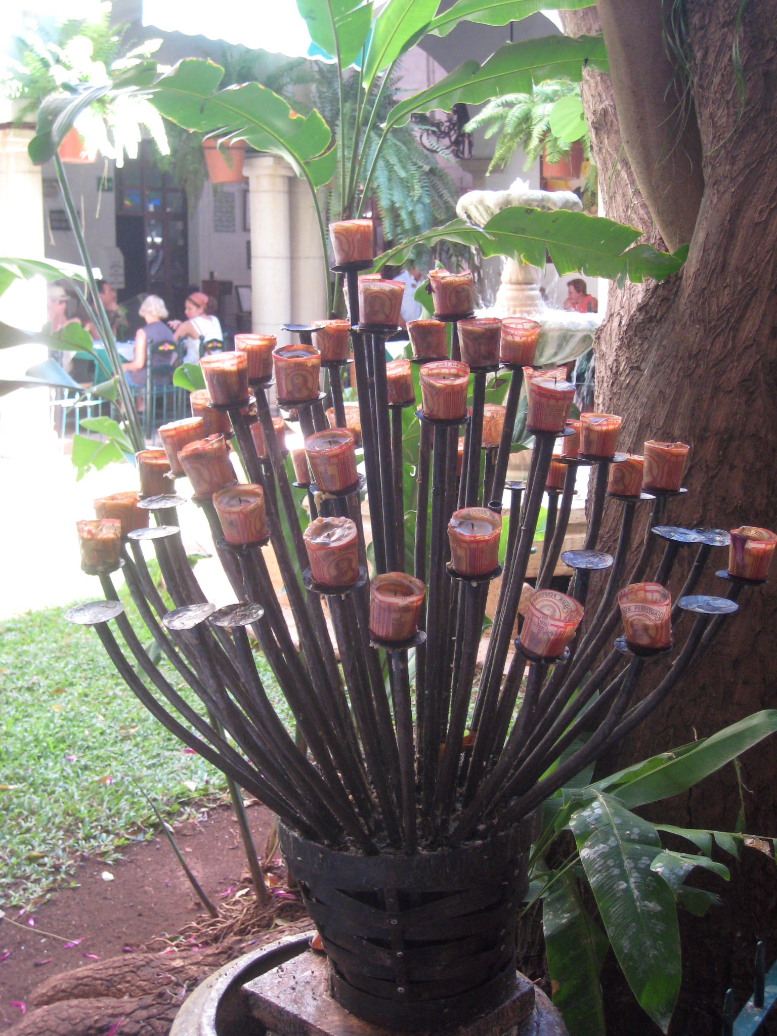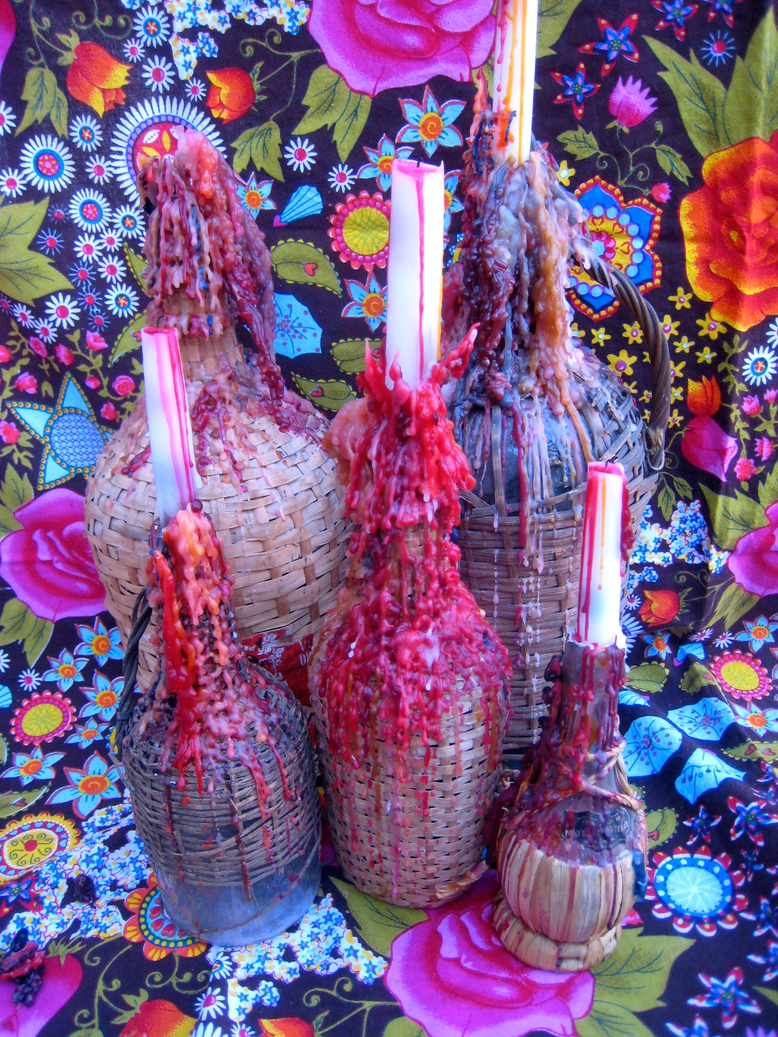 I was also reminded of some great candle displays that we saw on a recent trip to Valladolid, Mexico. All that wax looked so great on the old tequila barrel.