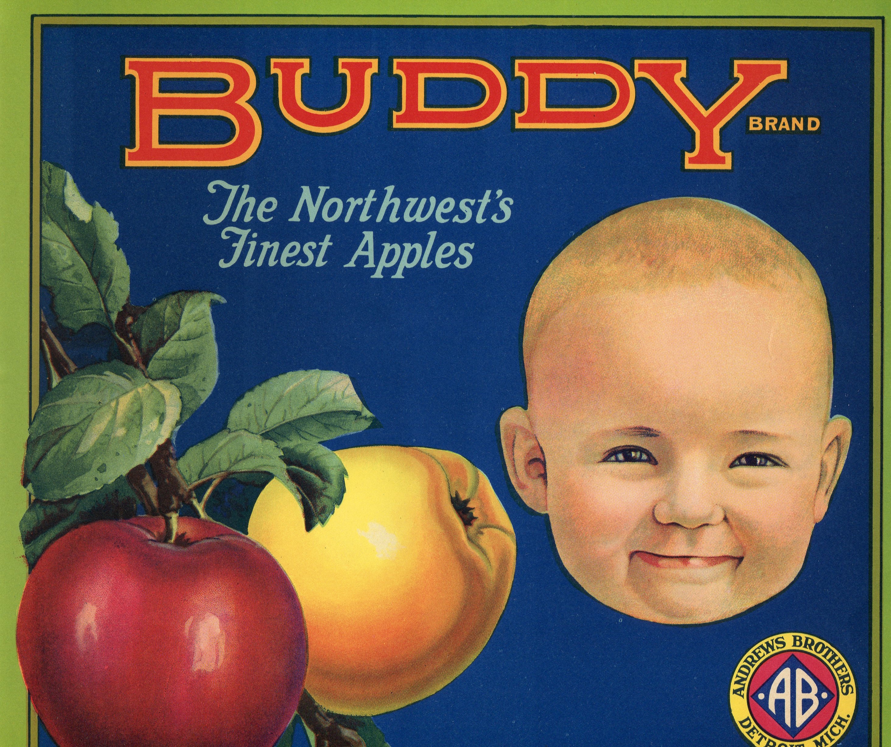 Paper labels have been used since the early 1880s. They were introduced to America by European artists, and this printing process became known as lithography. This was one of the first forms of commercial art. In America, orchard owners used this art as a way to advertise their crops. The labels were designed by artists and were glued on fruit and vegetable crates. Often the labels had very little relationship to the product, but that was not the point. The point was to draw attention to the product. Consequently, some of the images are quite captivating and imaginative.