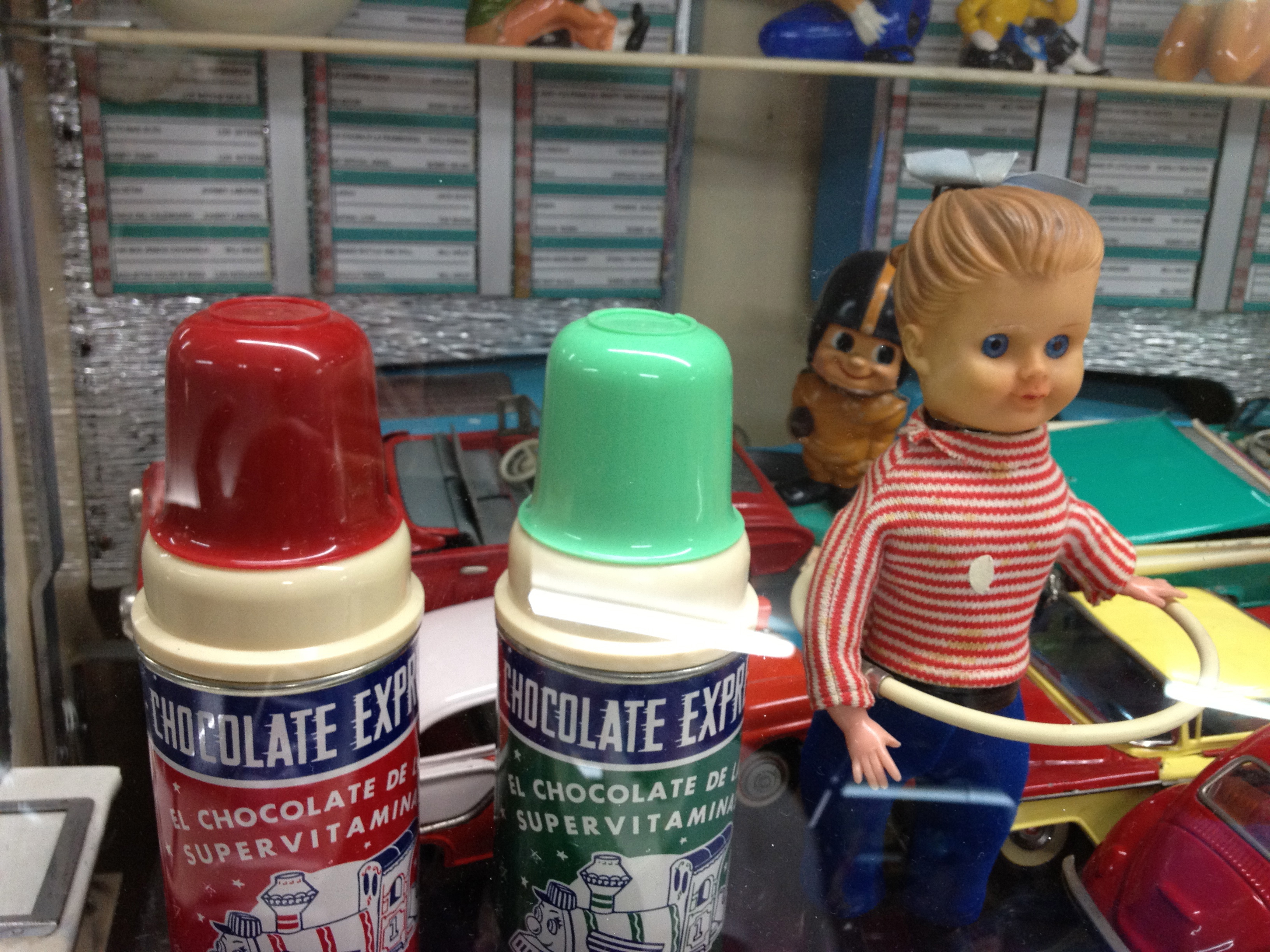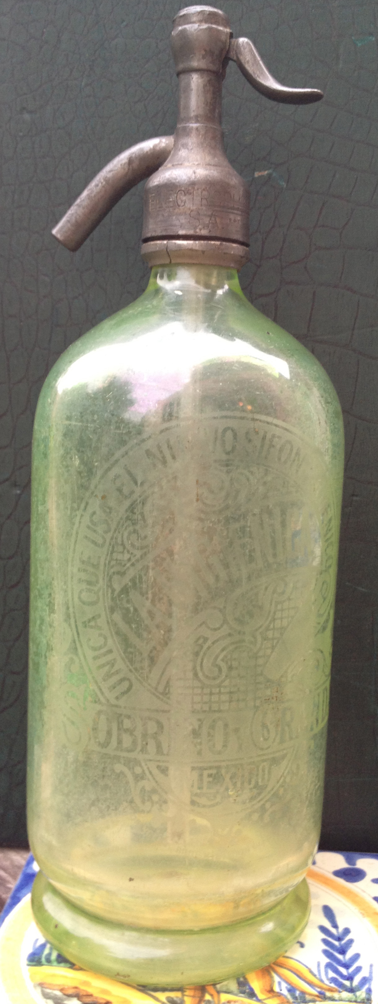 I bought a bunch of nifty things from high (1919 pale green vaseline glass soda siphon/ seltzer bottle,) to low (vintage lucha libre posters.)