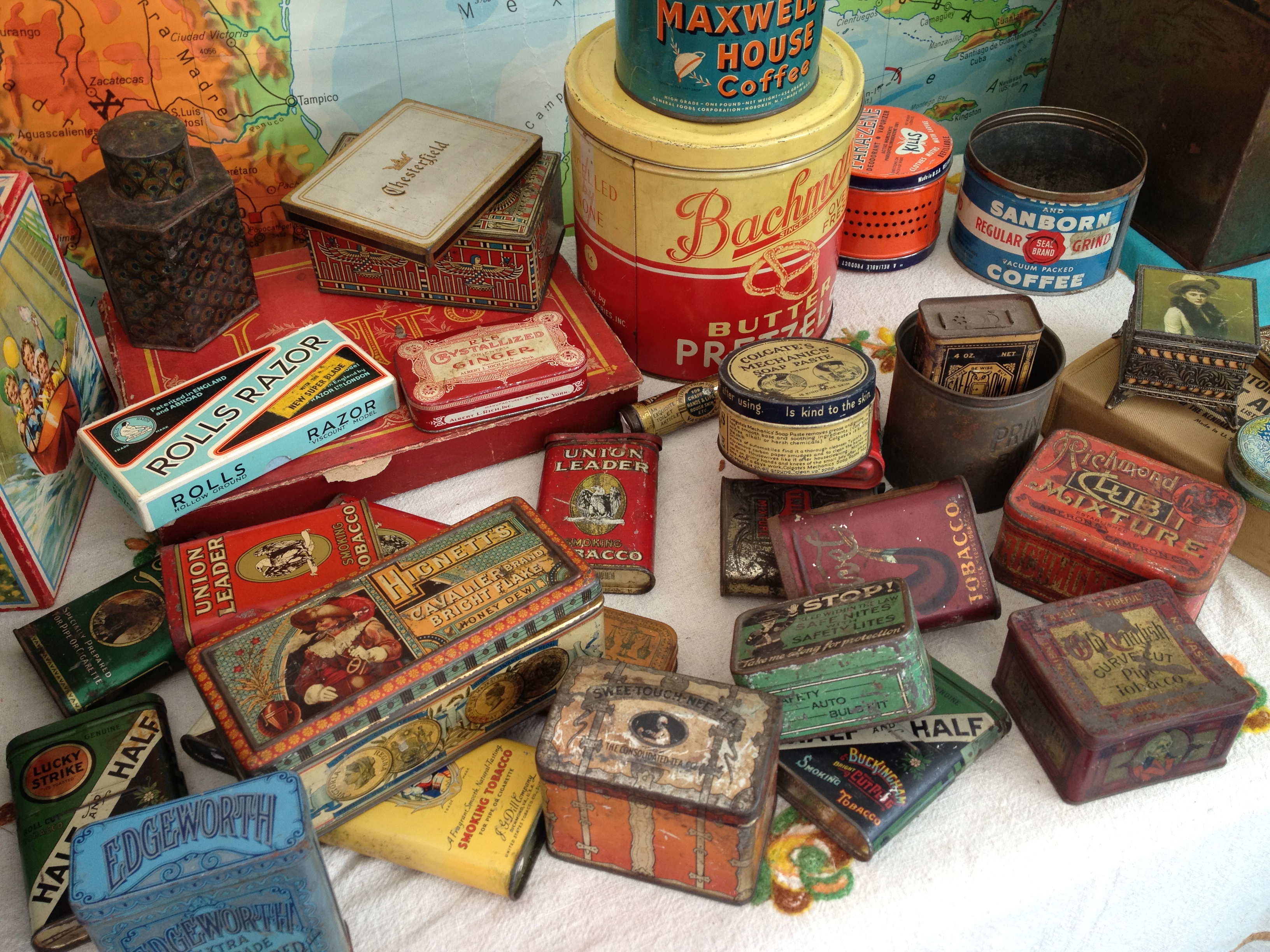 UncategorizedFall Flea Snapshots: Tinmania! September 26, 2012March 30, 2018 windsorplaceantiques Here are some fun snapshots of my booth last weekend at the Brooklyn Flea in Ft Greene. I had lots in some of my favorite categories: tins, apothecary bottles, maps and scales. I am loaded up with new old stuff for fall flea season. Share this: Click to share on X (Opens in new window) X Click to share on Facebook (Opens in new window) Facebook Like Loading... Related Published by windsorplaceantiques View all posts by windsorplaceantiques