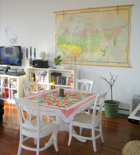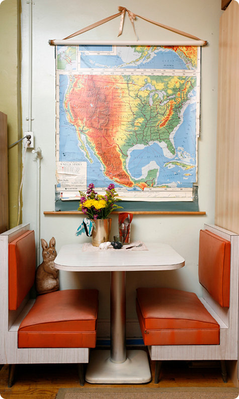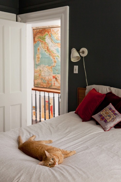 The antique school map of Italy in this image from a recent design sponge post was actually purchased from me last winter at the Brooklyn Flea. Supply your own adorable cat.