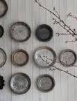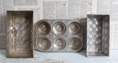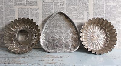 Autumn always renews my interest in baking and cooking. I'm bringing out many vintage kitchen items to the Brooklyn Flea this weekend. I've been seeing some great displays of vintage pie tins this fall. The patina and embossed advertising on these pie tins ($10 each) make for an interesting arrangement.
