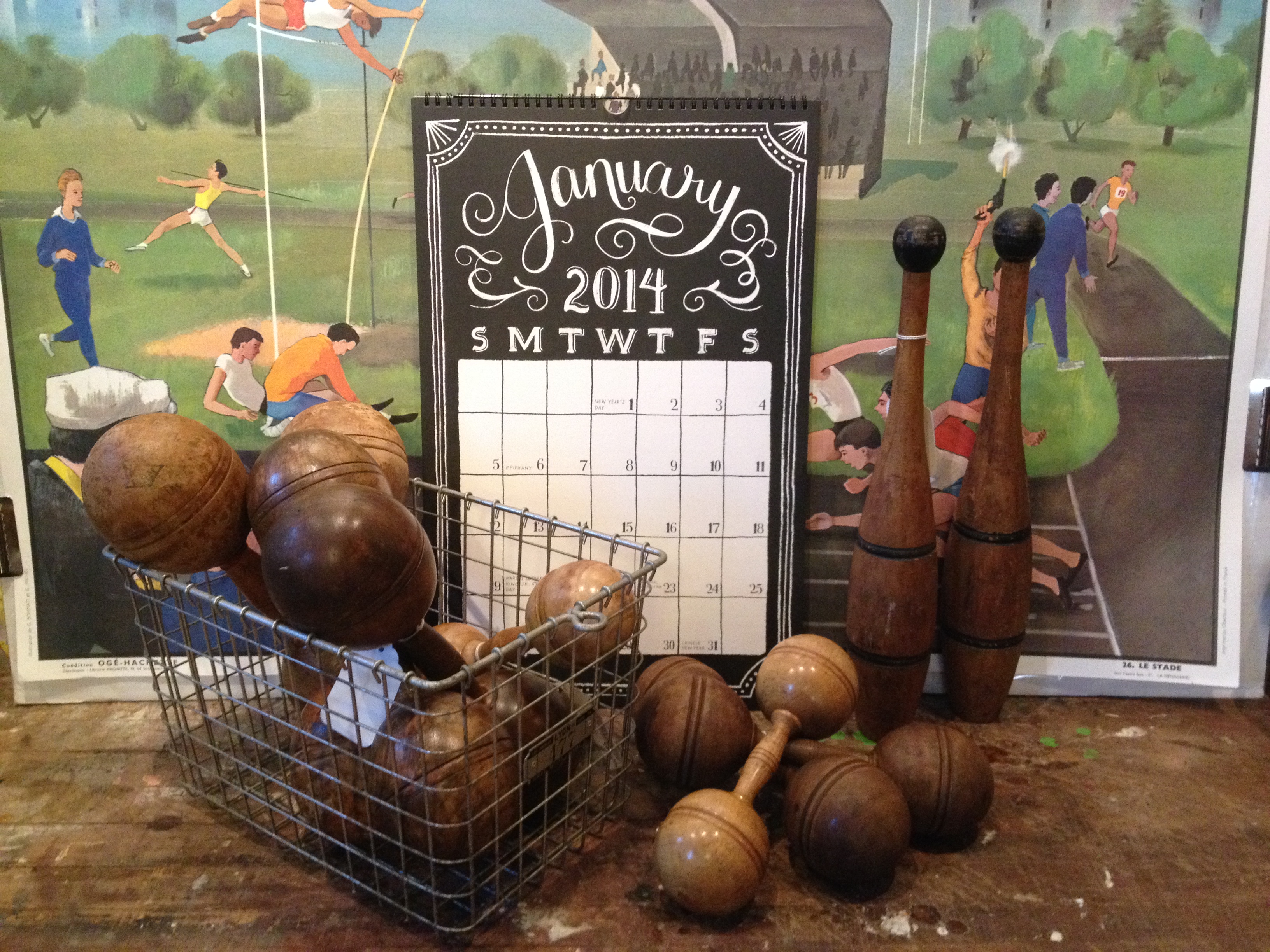 I will have some great early 20th C wooden dumbbells and indian pins in my booth at the Brooklyn Flea this weekend- along with vintage wire locker baskets.