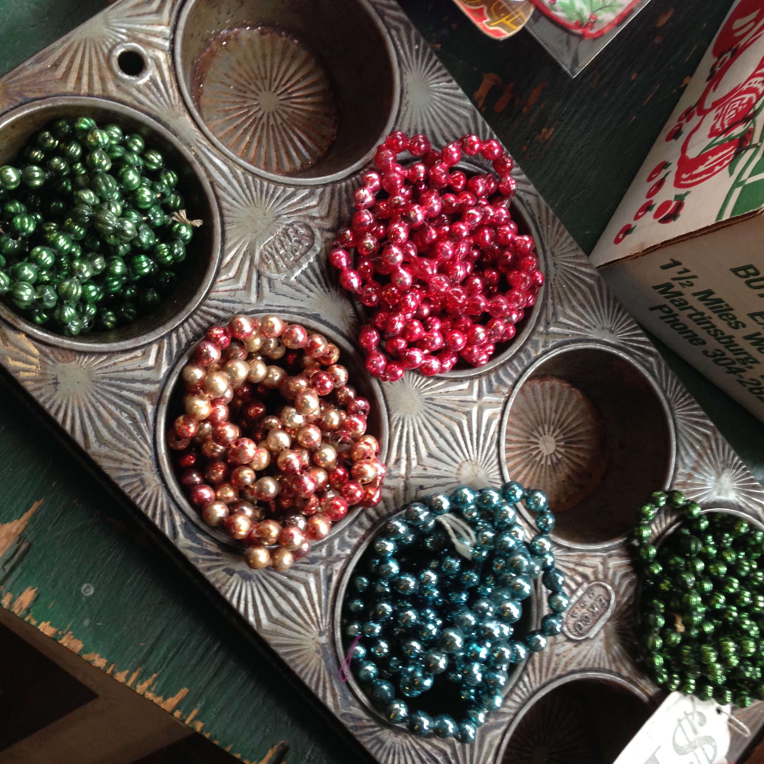 If you are still doing your holiday decorating, we have bowls of beautiful glass ornaments and sparkly mercury glass bead garlands.