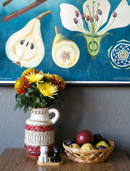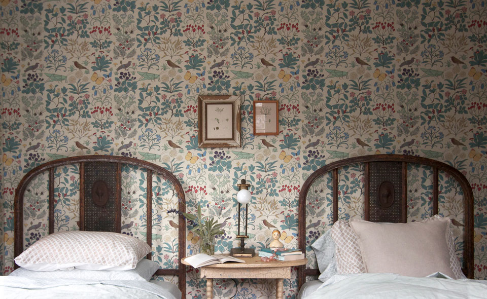 If you didn't want to paper a whole wall in a floral print, you could try a large botanical chart as a backdrop.