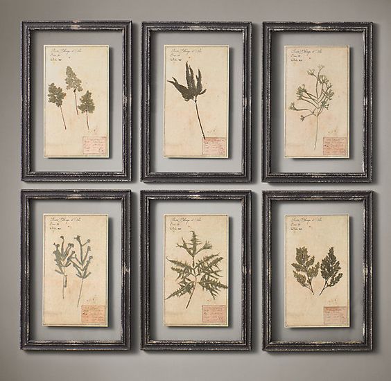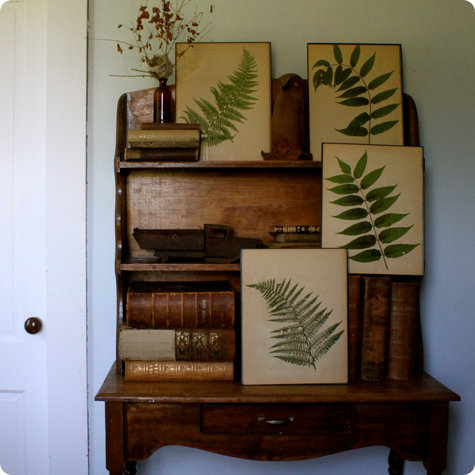 Pressed botanical specimens are lovely to decorate with. They fit nicely into a modern rustic style. Below are a few pretty tableau culled from design*sponge and other online sources.