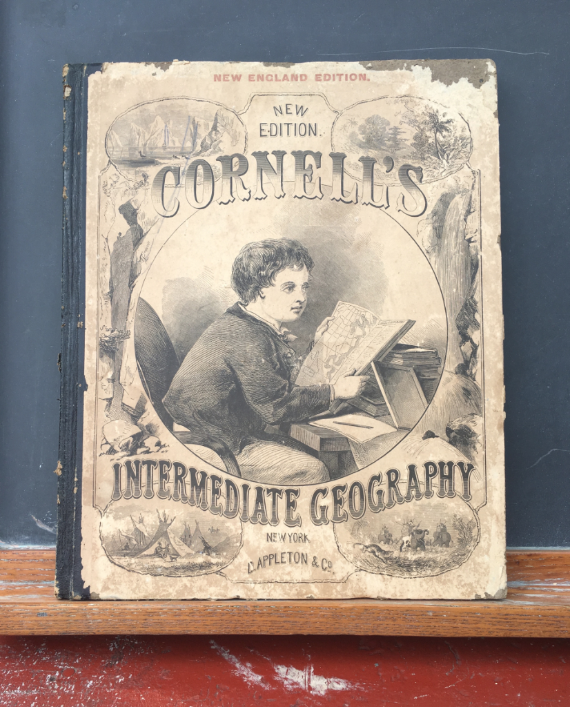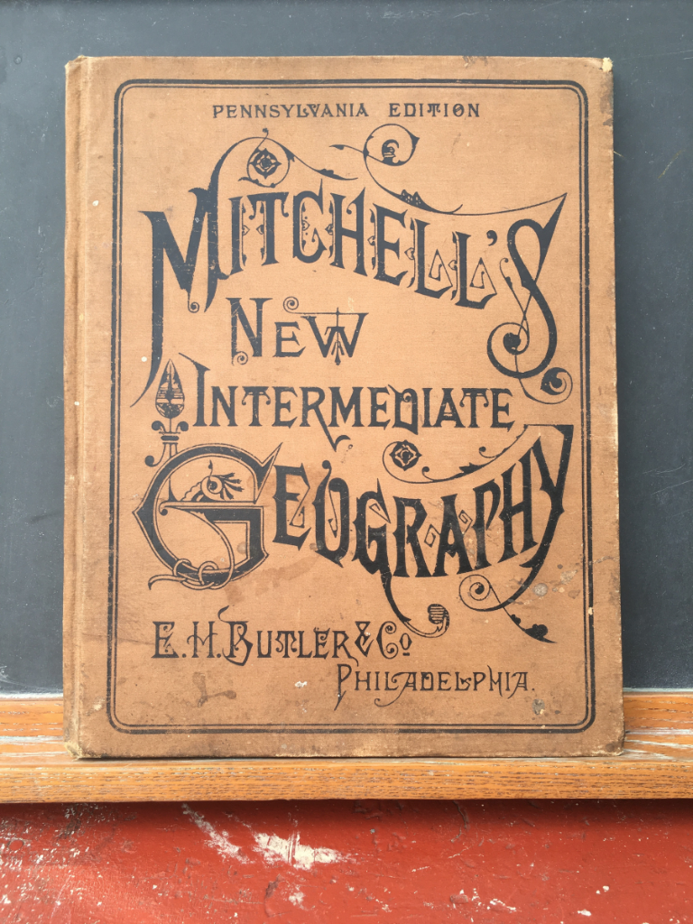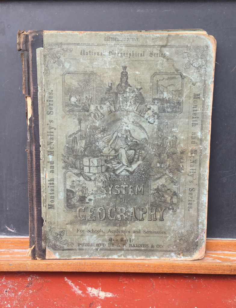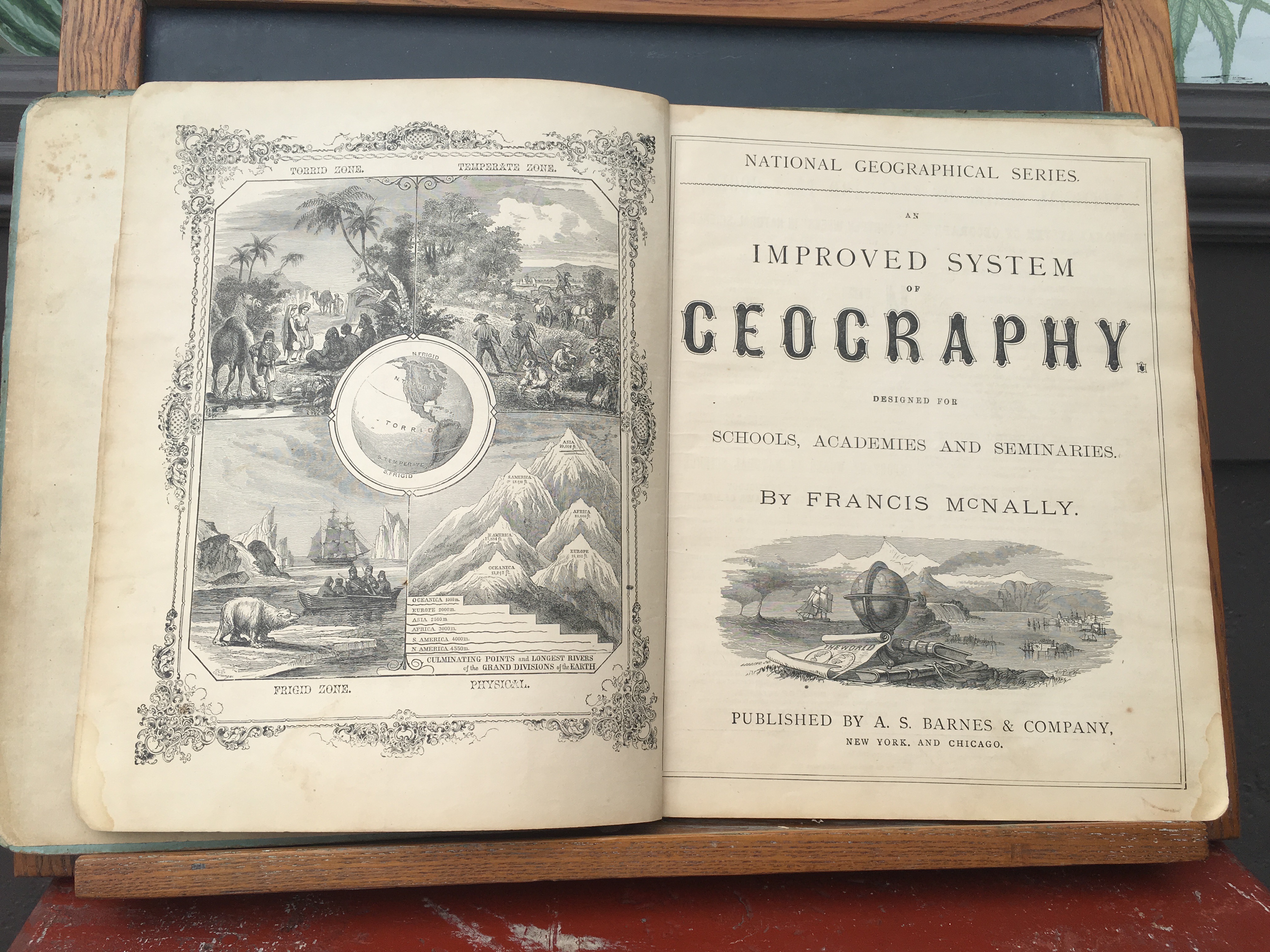 In general, I'm able to pick up very, very old examples of school atlases or geography primers (I have one dating back to 1819) for quite reasonable prices at auction. Many are made by highly esteemed map makers- such as Augustus Mitchell– whose larger atlases can fetch very high prices. I recently acquired a 1st edition of McNally's System of Geography from the 1840s. This company went on to become Rand McNally and to produce millions of school maps and atlases.