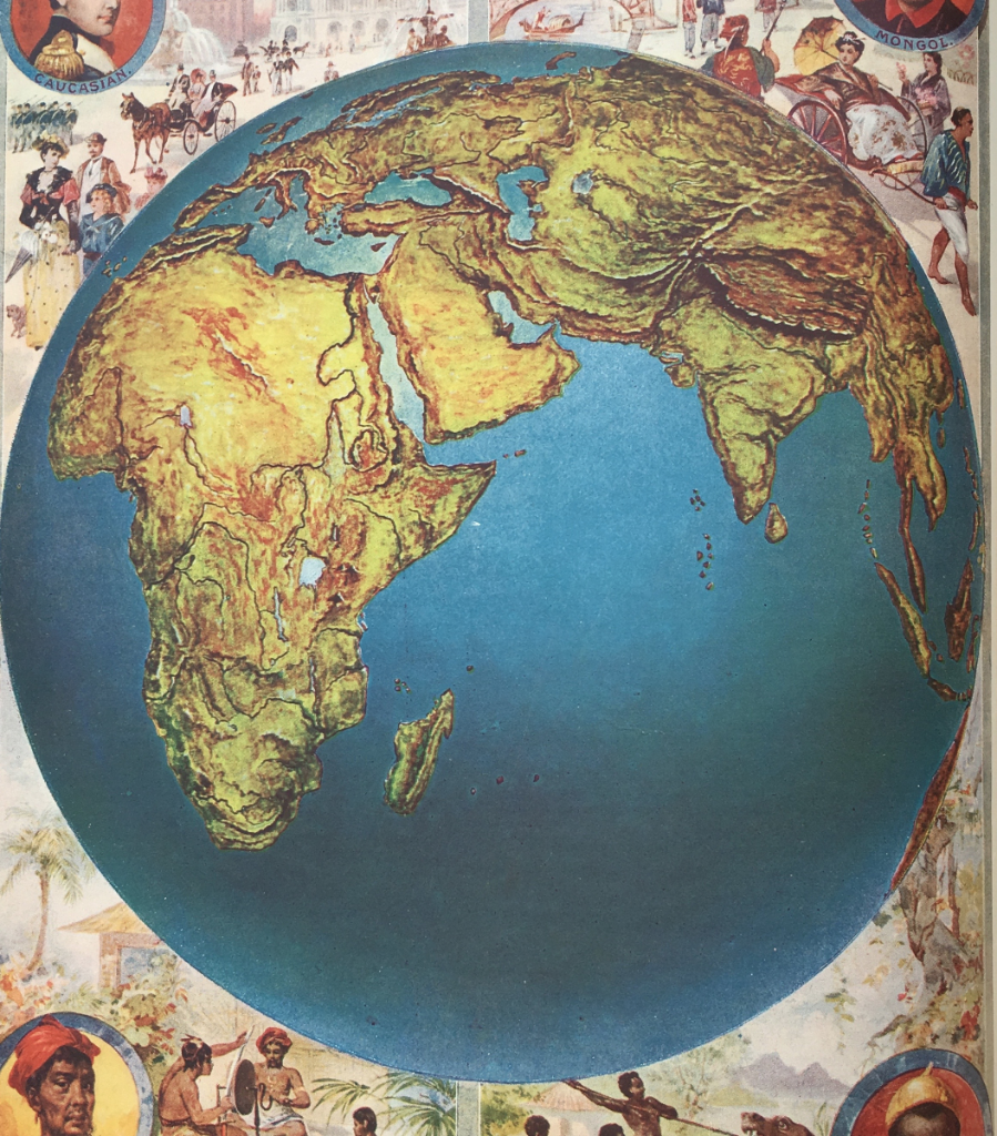 School atlases often have fascinating and complex scientific subject matter as well as out-dated and ridiculous notions of race. Sometimes the diagrams and engravings are as interesting as the maps.