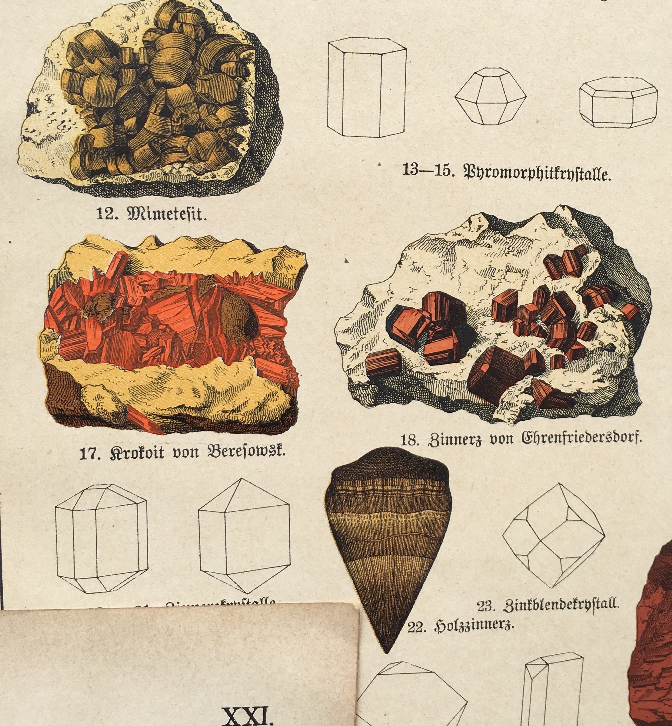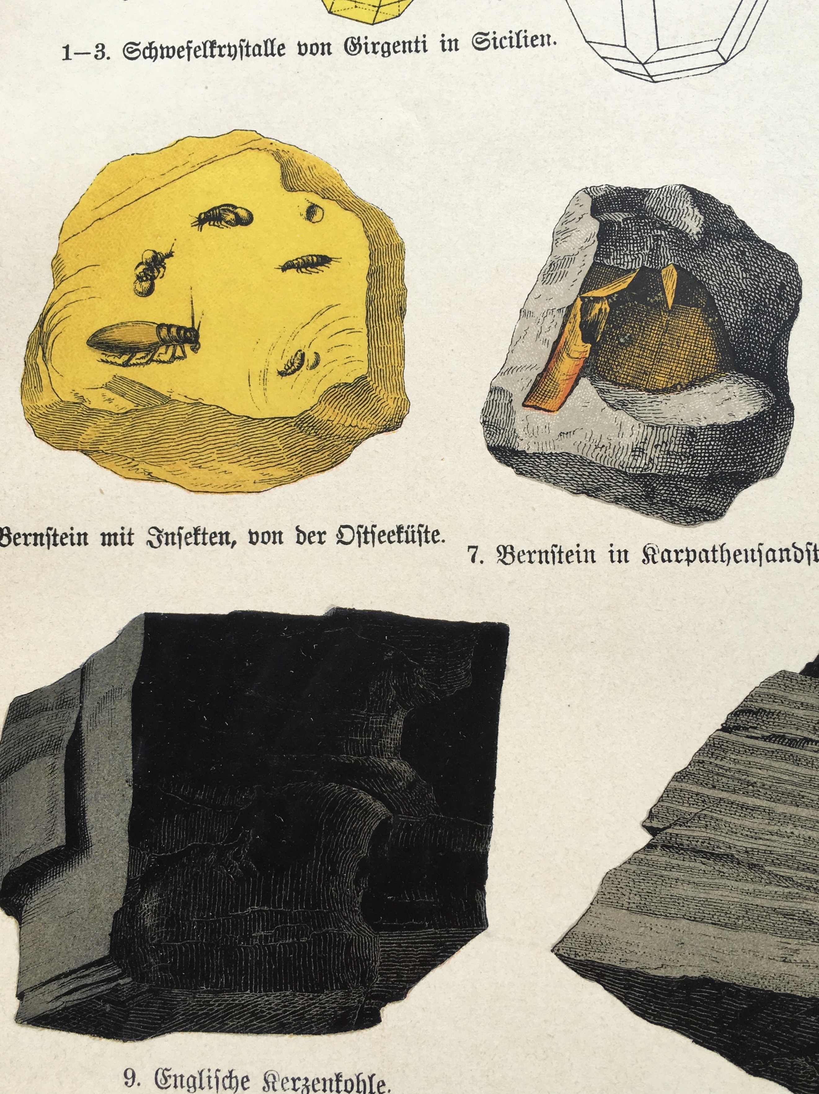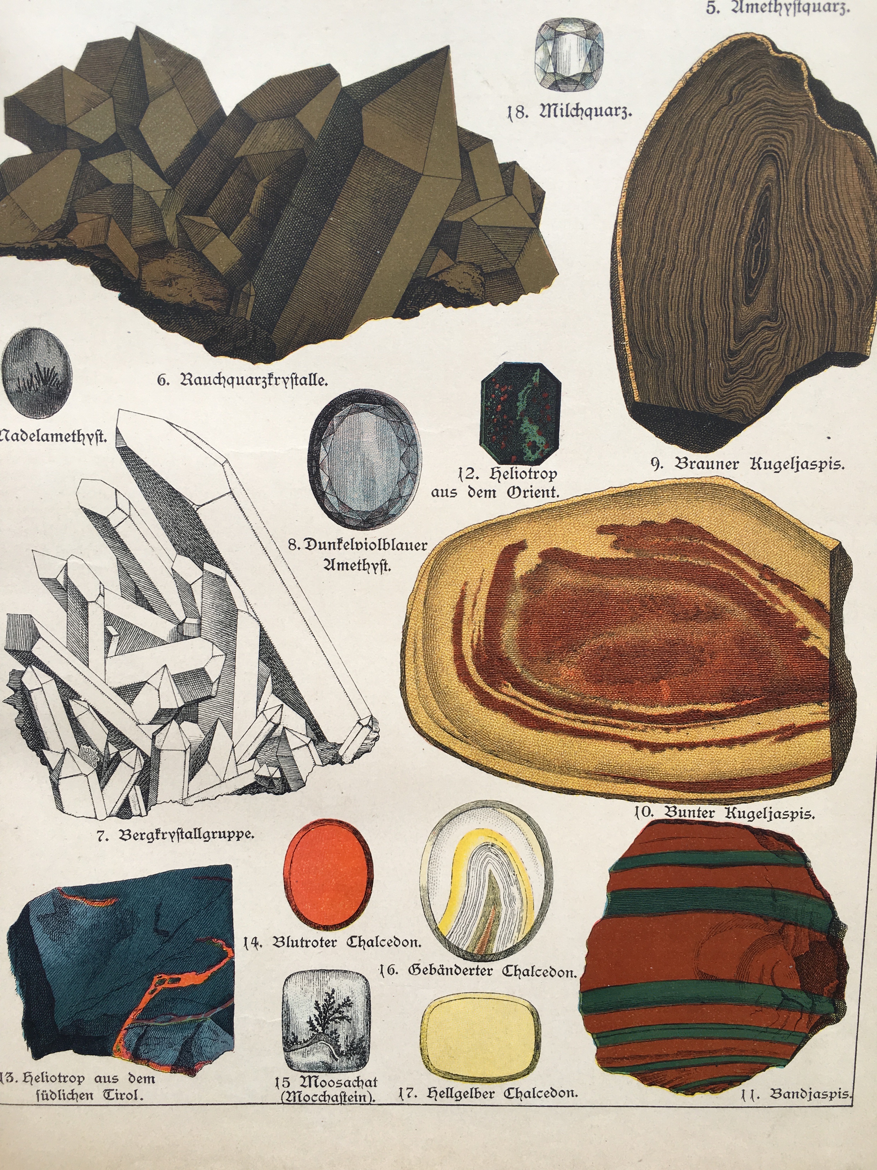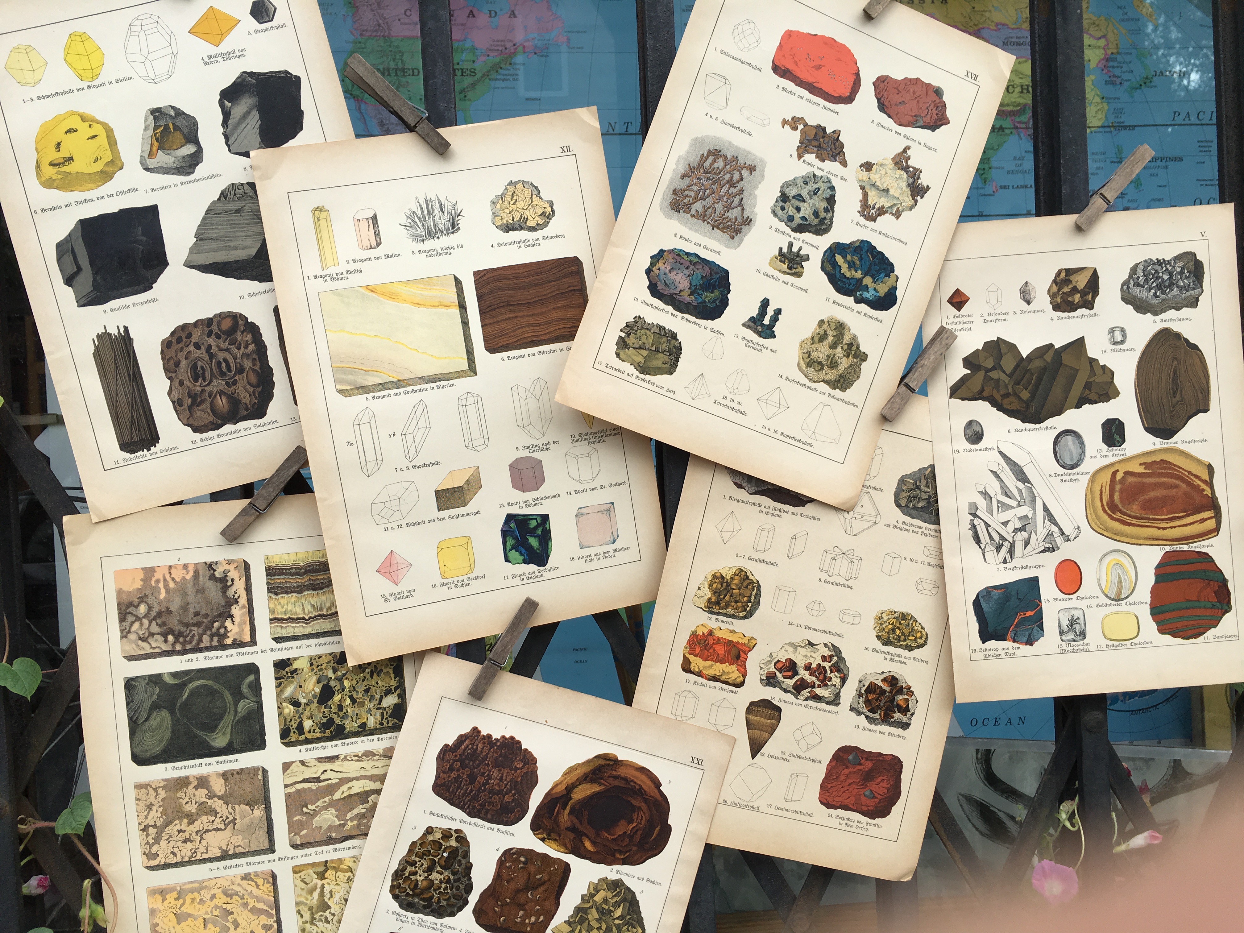 If you are in the market for some more refined geology, I have some beautiful prints of rocks, minerals and gems. Printed in Germany in the 1880s, these are some of the best examples of stone chromolithography that I have seen. The colors and details are absolutely amazing. These will be sold matted and ready to frame.