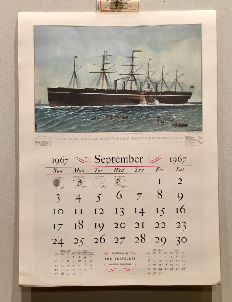 Several years ago I was at an estate sale at a very grand Pleasantville Victorian home. In the basement were boxes and boxes of unused Traveler's calendars from the 1940s through the 1970s. I was told that the family had owned an insurance brokerage in nearby Ossining, NY. They must have given the calendars out to their customers and saved the rest. Needless to say, I bought them all, and will, hopefully, have them for years to come.